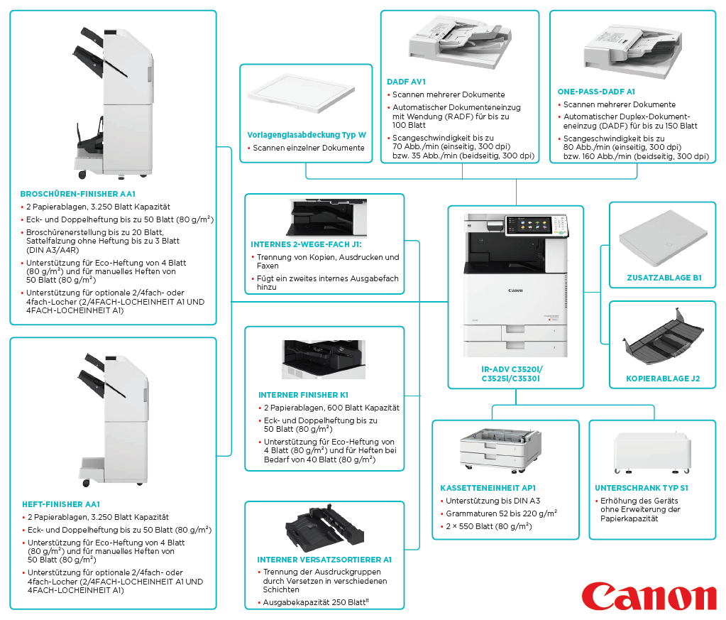 Die imageRUNNER ADVANCE C3500 Serie braucht nur eine kleine Stellfläche, bietet aber große Funktionalität zum Lösen sämtlicher Herausforderungen beim Verwalten von Dokumenten. So ist diese Serie die perfekte Ergänzung für die alltäglichen Abläufe in vielbeschäftigten Teams.